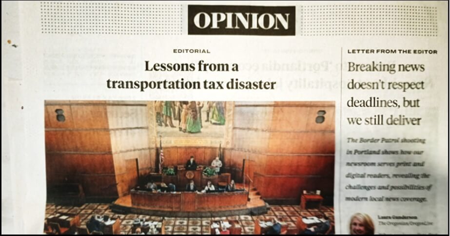 Lawmakers should read the Sunday Oregonian Editorial; “Lessons from a transportation disaster” (1/10/26) which urges lawmakers to stop the dysfunction over this tax.