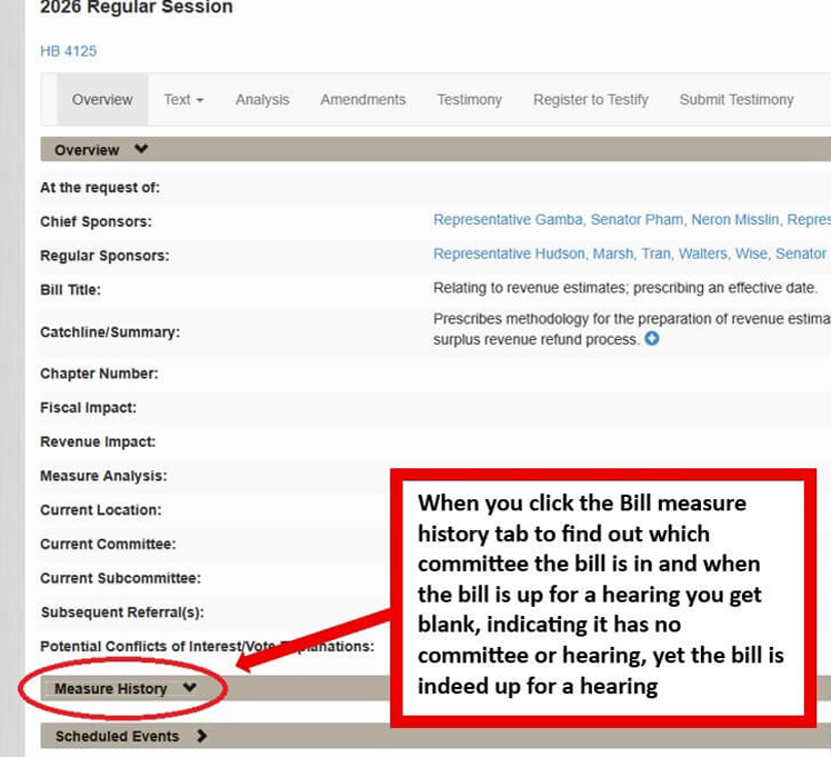A public hearing was announced around the weekend of a hearing on Monday immediately following the weekend, but on Monday morning the bill on the official Legislative website showed that there was no hearing assigned, no committee assigned and no ability testify.